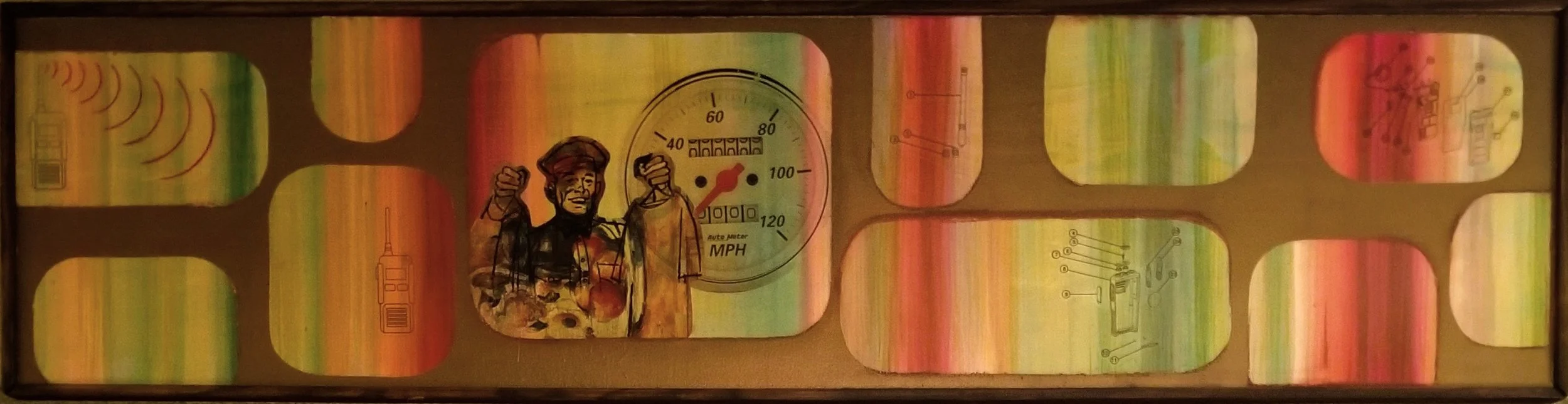 Acrylic, China Marker, and Collage on Panel, 2023