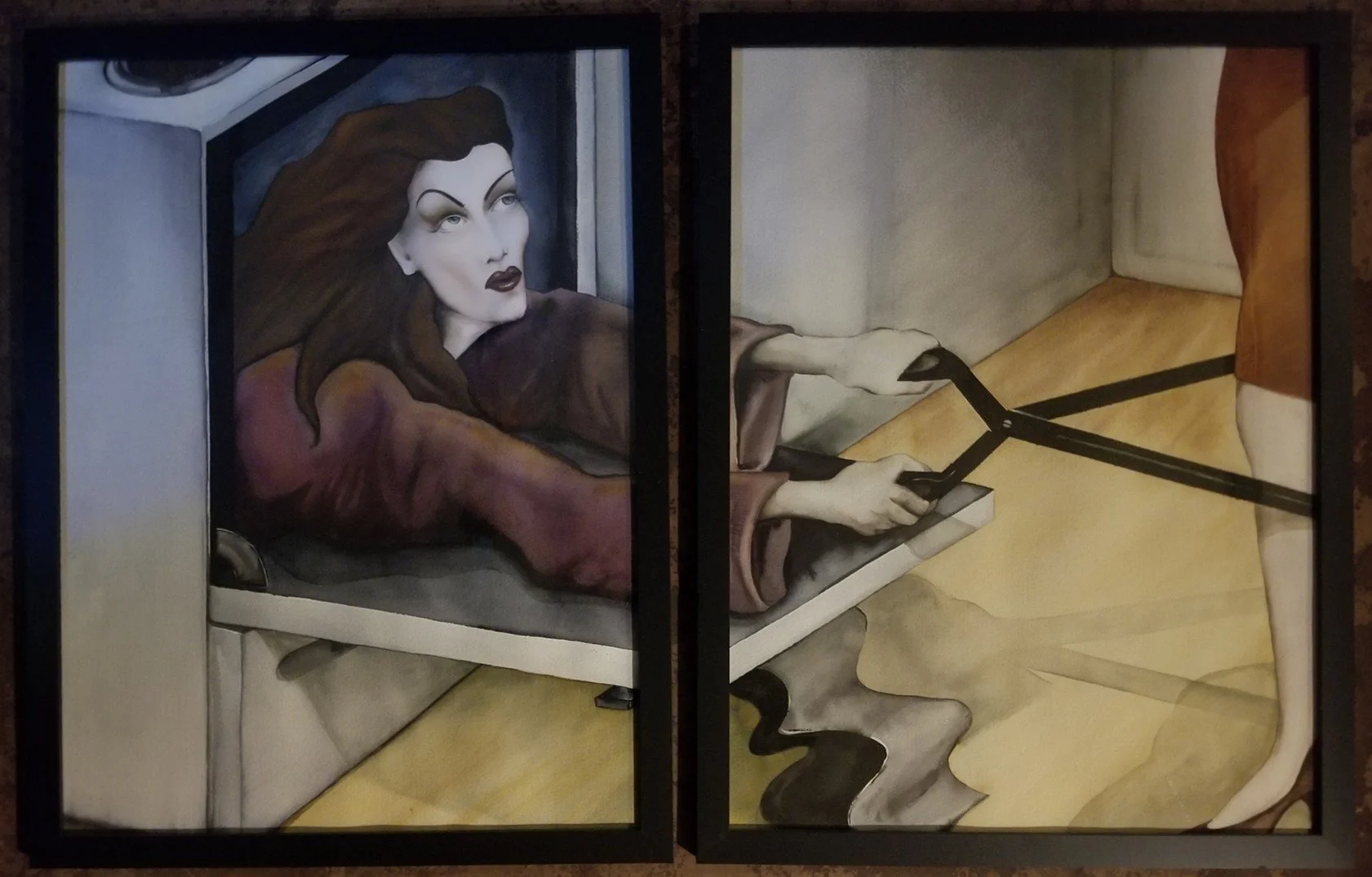 This came to me in a dream: a phantom lady popping out of the oven with giant scissors, to cut you off at the knees.