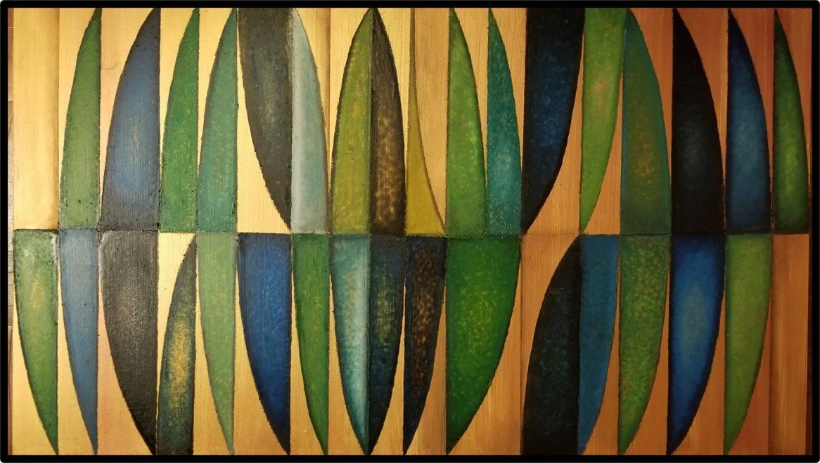 This shape kept begging me to paint it, and the result reminded me of some sort of code. This painting is readable, to someone. The negative spaces created between the shapes have something to say as well.
