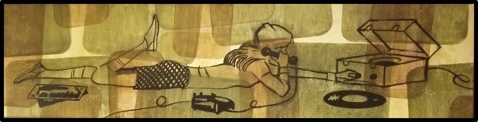 Line drawing stolen from a 1960s textbook about navigating your teen years. What record do you think she is listening to? To whom is she talking? What hot goss is she spreading? I love making these narrow paintings, because they can hang in spaces above windows or shelves.