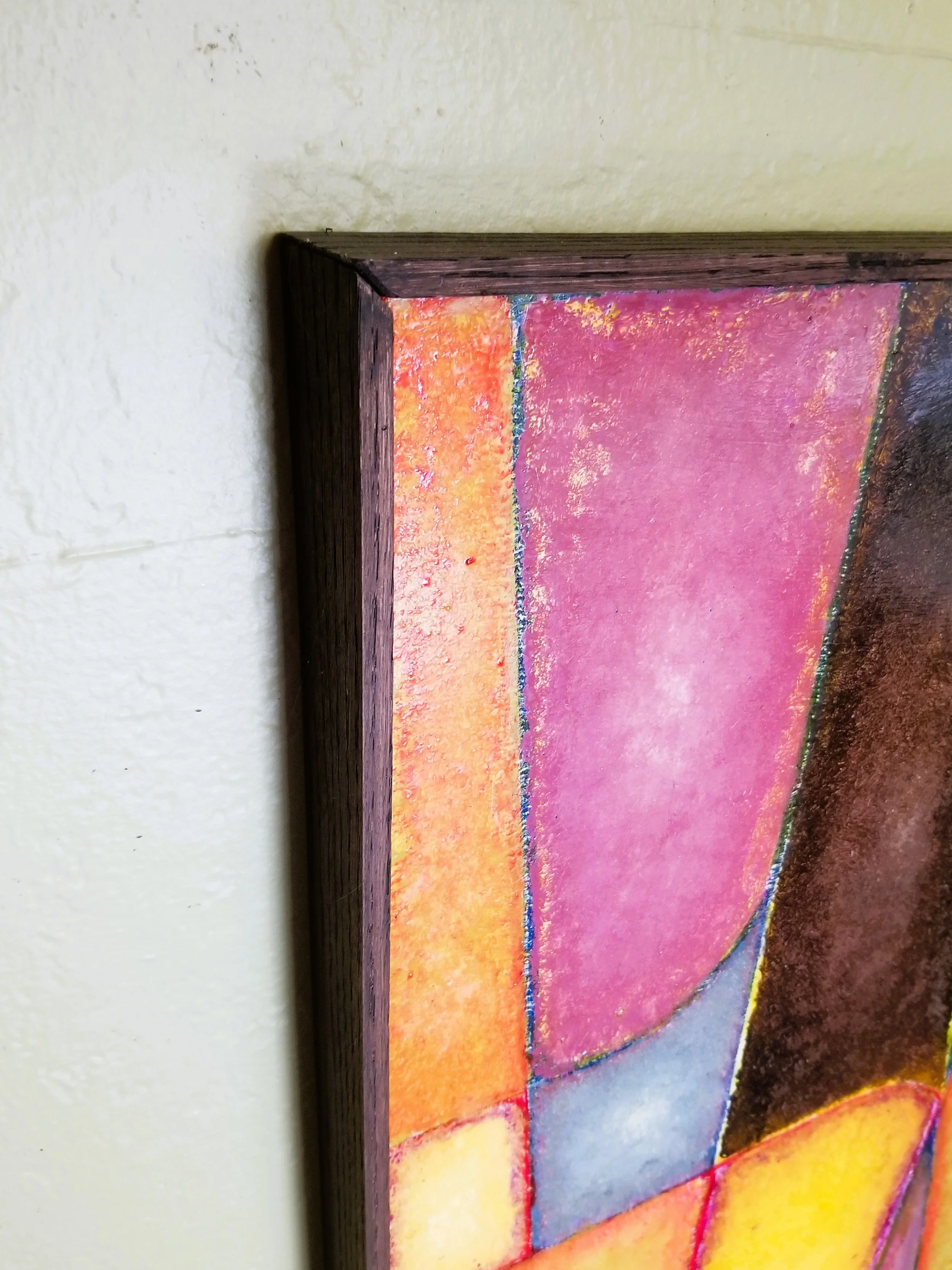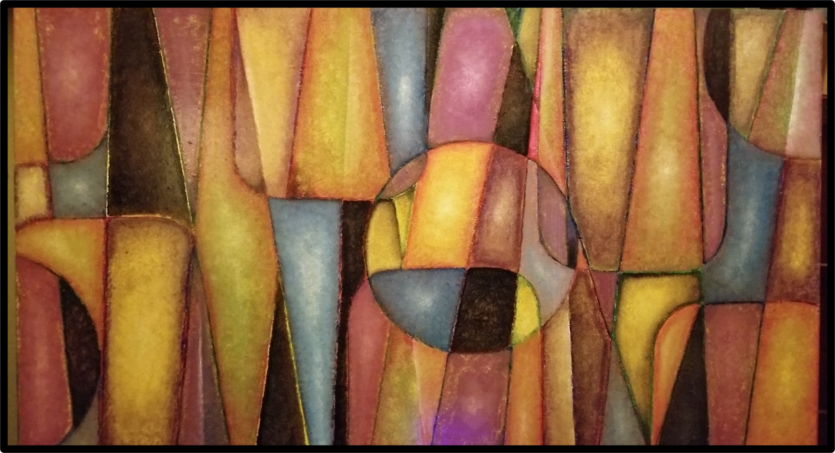 In this painting, I was experimenting with dulling colors by using complementary pairs together in different dilutions. The result, I feel, is colorful but also muted and restrained. On display, it seems to change hues while looking at it!
